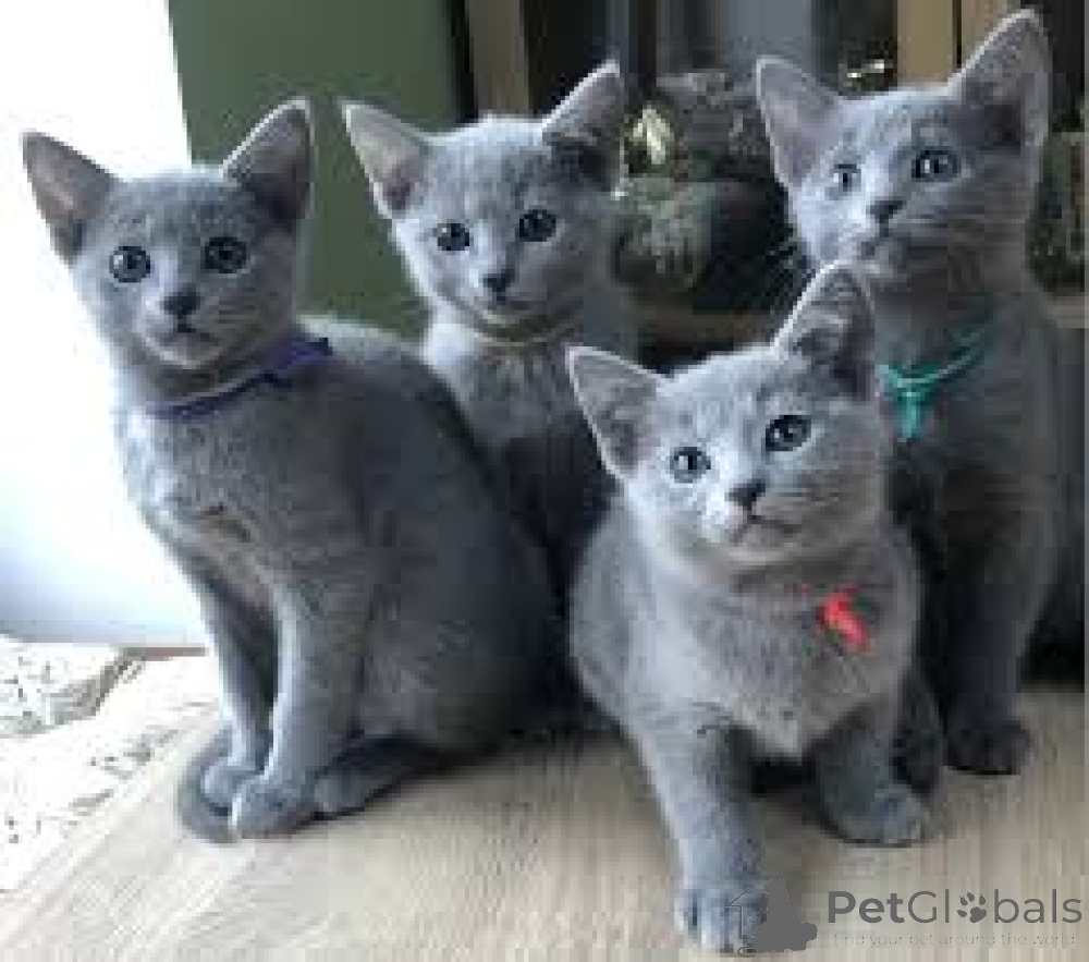 Schattige russische Blauwe-Kätzchen haben ein neues Zuhause gefunden. Zu verkaufen