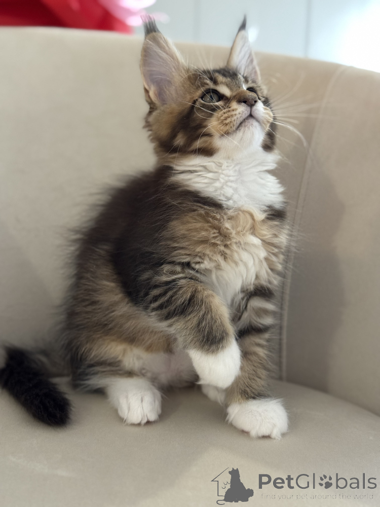 Maine Coon ist eine ziemlich große, starke und robuste Rasse. Seine abwechslungsreiche Farbe, dicke und flauschige Wolle, hebt ihn von anderen Katzentieren ab.
