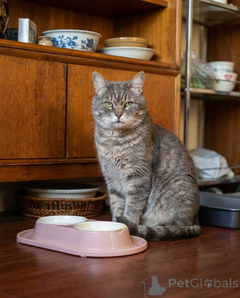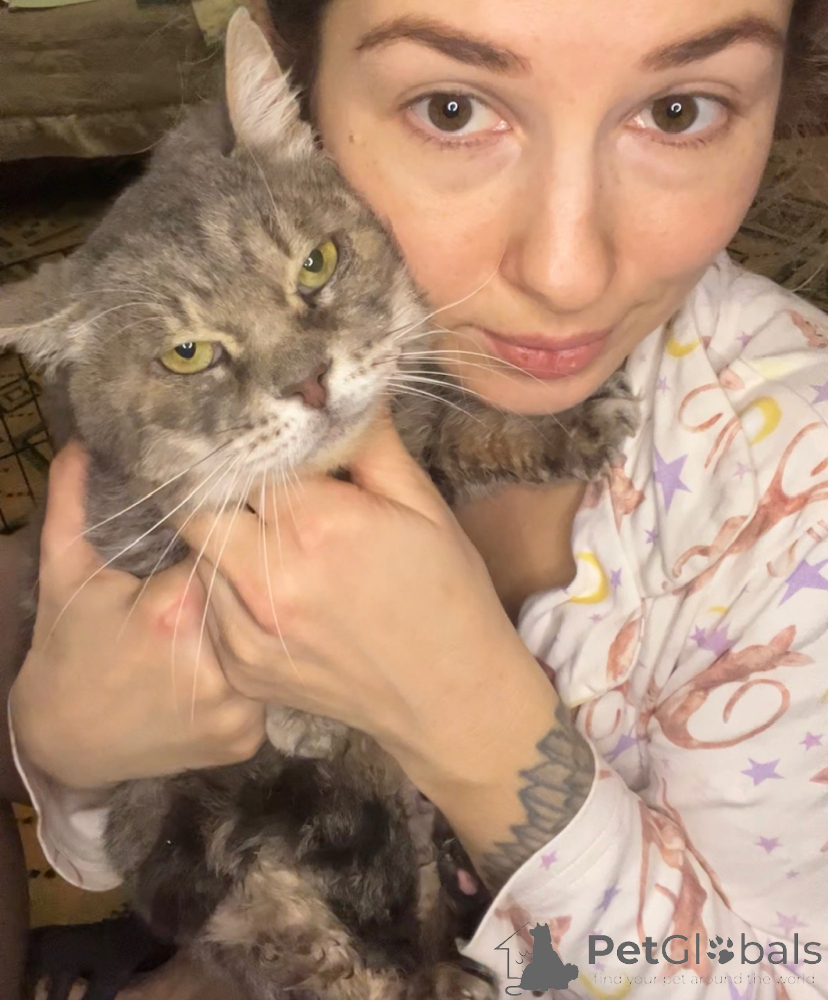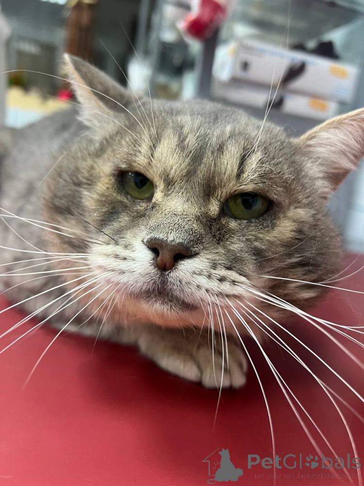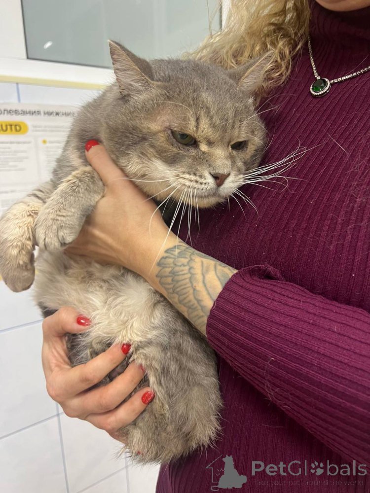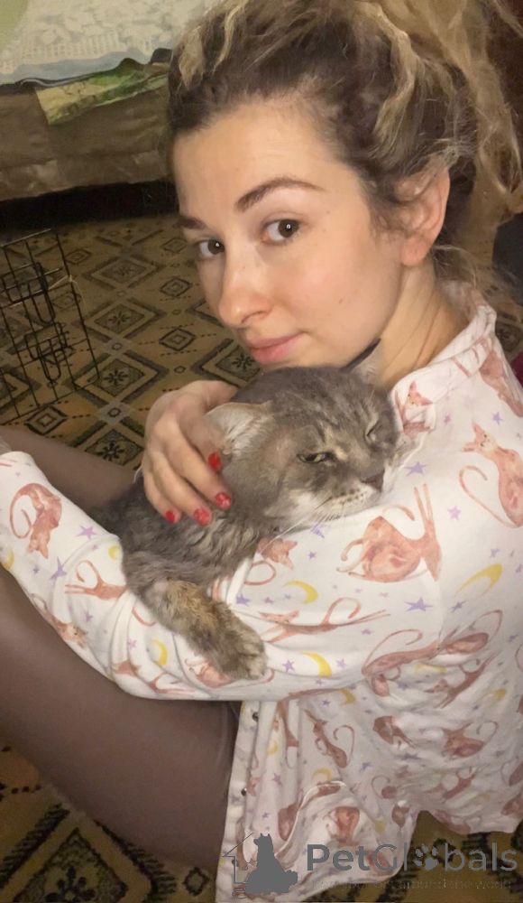 Eine wunderschöne große graue Katze namens Kotya richtet sich ein. Zu verkaufen