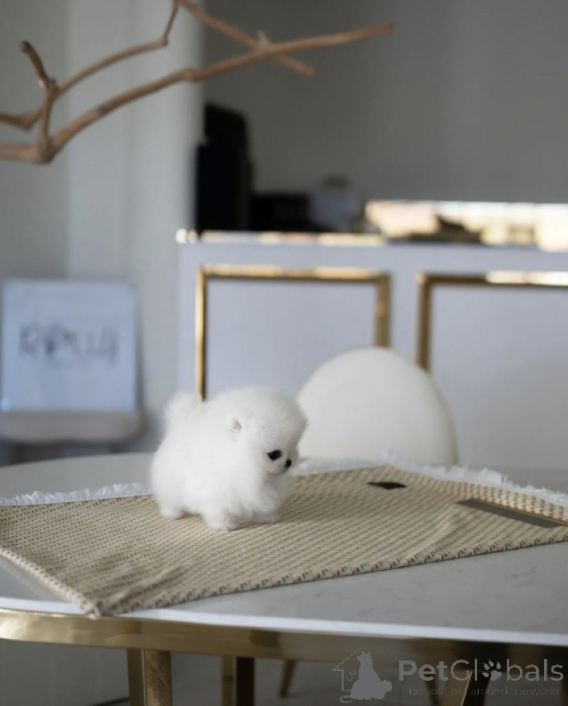 Netter weißer pommerianischer Welpe Zu verkaufen