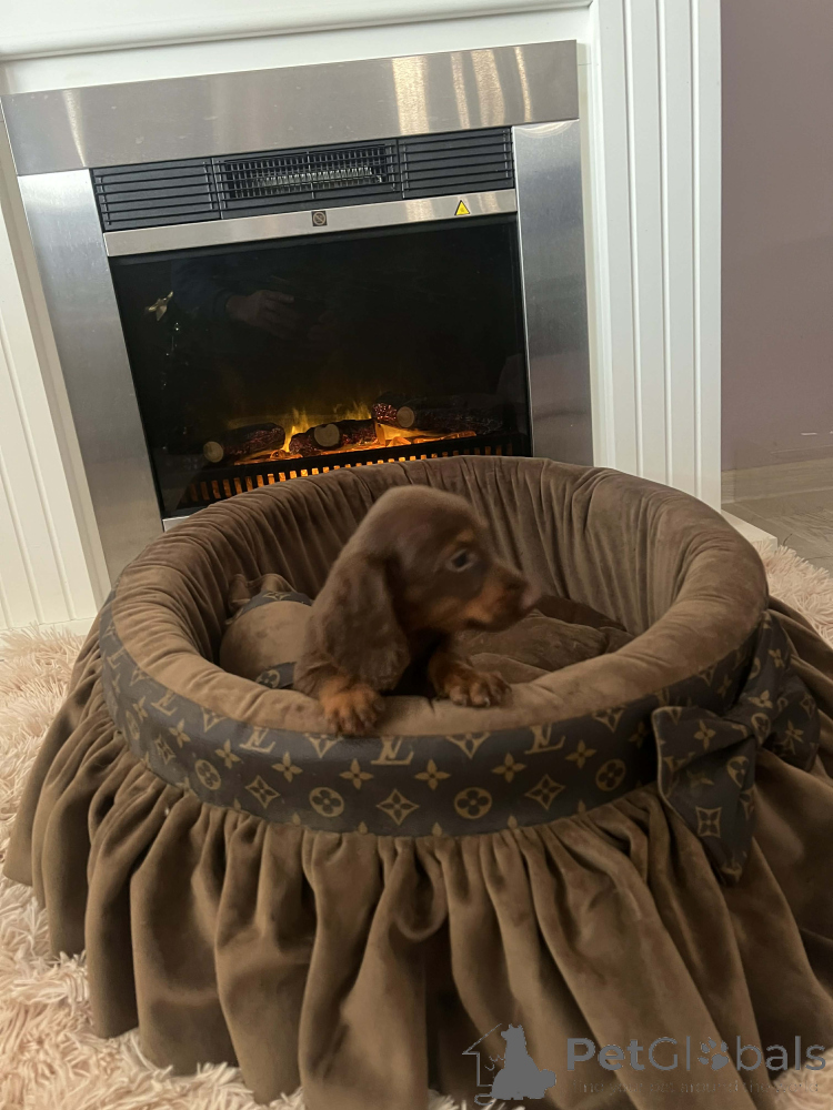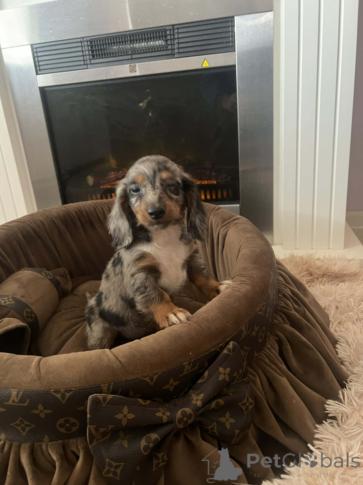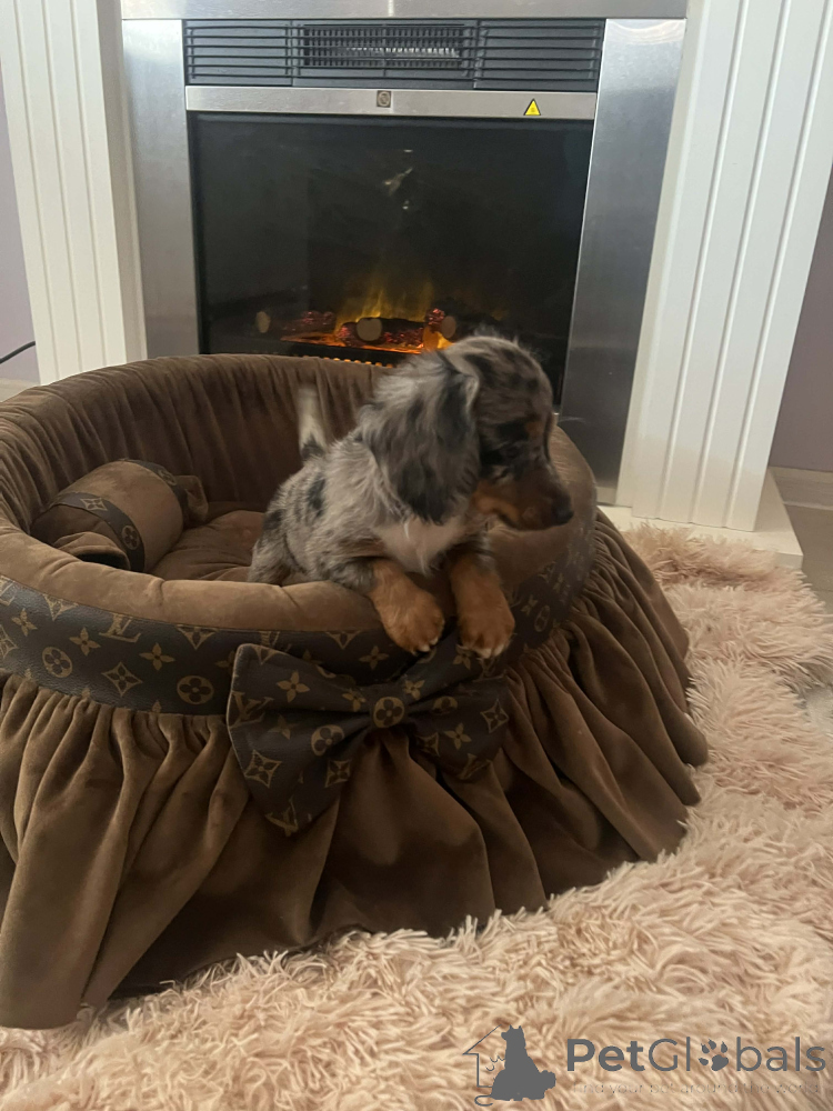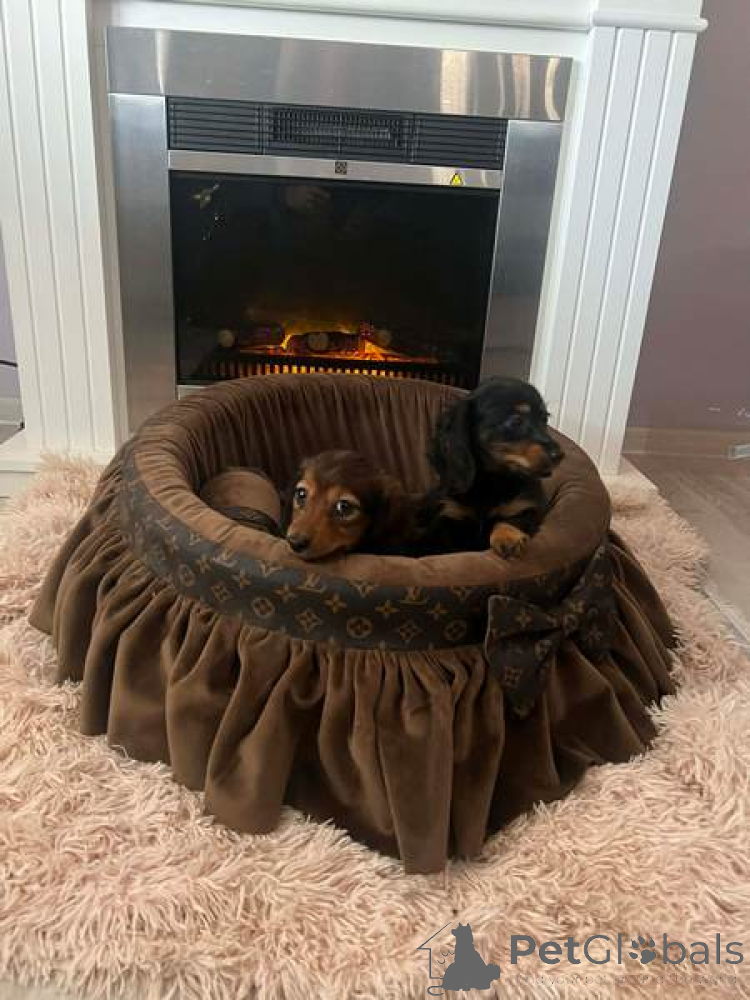 Langhaarige Zwergdackelwelpen. Die Welpen sind entwurmt, zweifach gegen Infektionskrankheiten geimpft und sozialisiert. Jeder Welpe erhält ein Erstpaket Trockenfutter, eine tierärztliche Untersuchung sowie einen Chip und einen EU-Heimtierausweis. Die Welpen haben eine FCI-Ahnentafel.