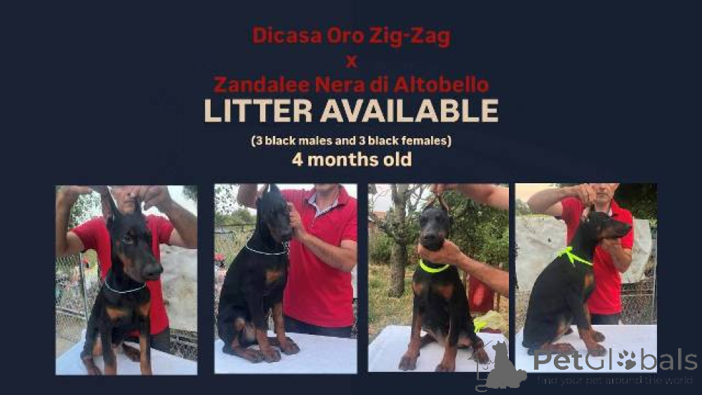Dobermann-Welpen zu verkaufen, 4 Monate und 15 Tage alt. Die Welpen haben alle drei Impfungen erhalten und sind von Darmparasiten befreit. Sie sind für Ausstellungen geeignet und stehen unter ständiger tierärztlicher Aufsicht.